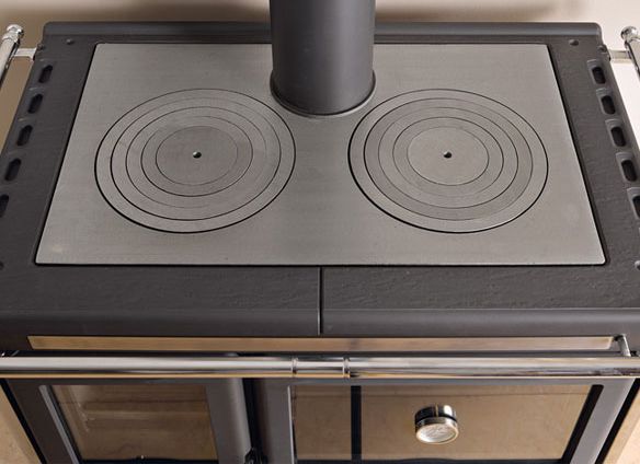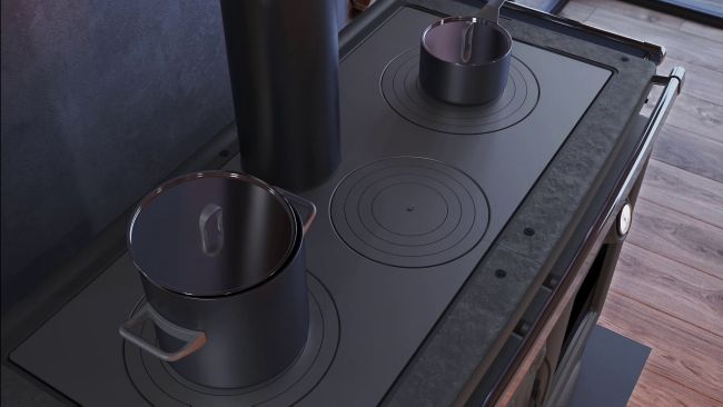 Sami możemy określić priorytet grzania lub gotowania i - w zależności od potrzeb - podłączyć piec od góry lub od tyłu. W piecu spełniającym tylko funkcję ogrzewczą, wierzchnia żeliwna płyta pozbawiona jest płytek do gotowania.
