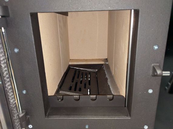 Można w nim spalać węgiel kamienny, drewno kawałkowe i brykiety drzewne. Do komory paleniskowej zmieszczą się polana o długości do 300 mm. Boczne ściany paleniska ma wyłożone płytami szamotowymi grubości 40 mm, chroniącymi skutecznie ścianki piecyka przed przepaleniem, podczas spalania węgla kamiennego, który podczas tego procesu wytwarza miejscowo wysoką destrukcyjną temperaturę. Na poniższym zdjęciu pokazane jest wnętrze paleniska od góry, wyłożonego grubymi płytami szamotowymi. W dole widoczny wstrząsany i obracany ruszt żeliwny, ułatwiający szlakowanie.
