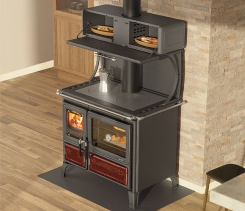 Pallas Back to wersja pieca z piekarnikiem i z płytkami do gotowania w wierzchniej płycie.