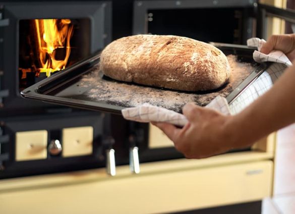 Piekarnik w Pallasie Back ma szerokość 415 mm i głębokość 300 mm. Nie jest on tu tylko gadżetem, lecz wysokosprawnym urządzeniem do pieczenia. Gorące gazy drzewne obiegają i omywają piekarnik z pięciu stron, podgrzewają sklepienie pieca z płytkami do gotowania i uchodzą do komina.