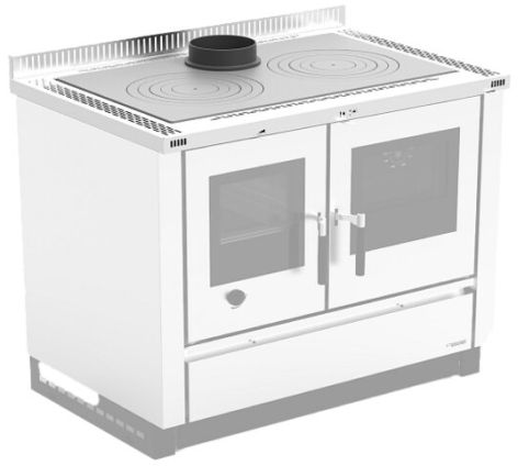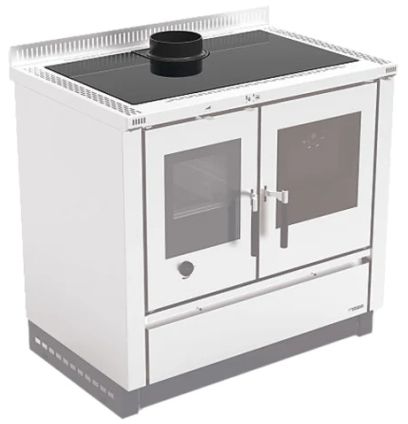 Do komina może być podłączony od tyłu lub od góry z wierzchniej płyty. Gdy będzie podłączony od góry, płyta do gotowania będzie miała mniejszą powierzchnię roboczą. Króciec dymowy ma średnicę 120 mm. Wymaga minimalnego ciągu kominowego 12 Pa.