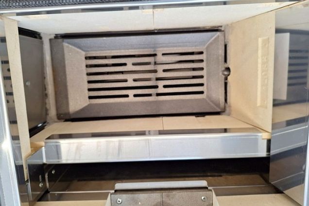 Komora paleniskowa, na całej swej wysokości, jest wyłożona płytami szamotowymi grubości 40 mm i podzielona w pionie na dwie części za pomocą żeliwnych rusztów (palenisko letnie/zimowe).