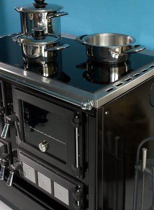 Sami możemy określić priorytet grzania lub gotowania i - w zależności od potrzeb - podłączyć piec od góry lub od tyłu. W piecu spełniającym tylko funkcję ogrzewczą, wierzchnia żeliwna płyta pozbawiona jest płytek do gotowania.
