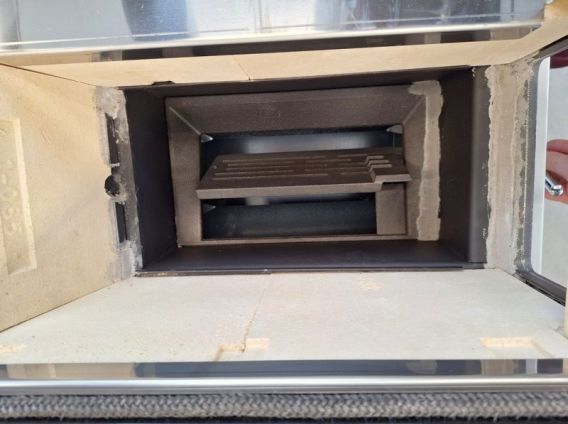 Komora paleniskowa, na całej swej wysokości, jest wyłożona płytami szamotowymi grubości 40 mm i podzielona w pionie na dwie części za pomocą żeliwnych rusztów (palenisko letnie/zimowe).
